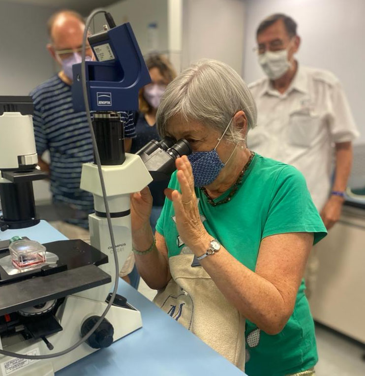 Les visites als laboratoris són una iniciativa per conèixer i trobar-nos amb les persones que ens donen suport i fan possible la recerca. Durant el recorregut, els convidats/des van tenir l’oportunitat d’observar com les aportacions es transformen en una ajuda real perquè el nostre personal investigador pugui continuar els seus projectes científics.